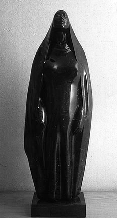 Original black marble sculpture on 2 1/4" black marble base. Signed and dated by the artist "Amaya 1994" on the left rear corner of the base.