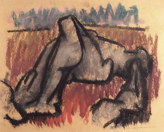 Original pastel drawing. Hand signed and dated by the artist, in pencil "H Burkhardt 64", lower right. In excellent condition. Sheet size: 18 3/16 " x 24"
