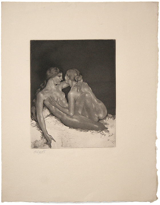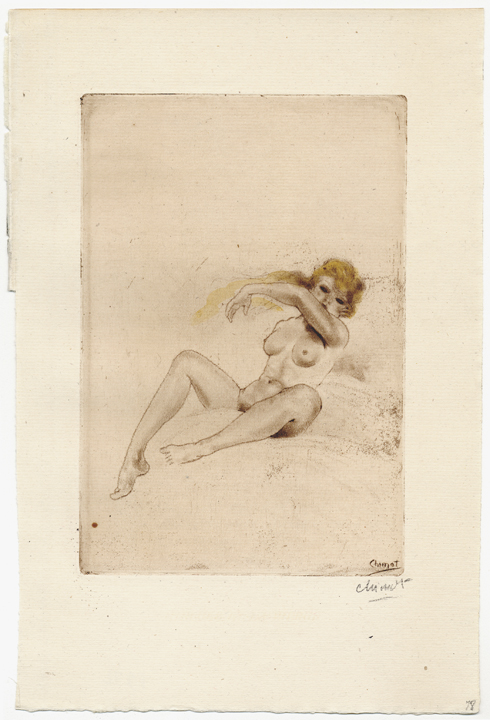 | Original etching and aquatint printed on cream wove paper with full margins and deckled edges. Hand signed by the artist in pencil, lower left "Chimot" and also in the plate "Chimot" in lower right. In excellent condition, unframed. Platemark: 7"x 5 1/2"; Sheet size: 13" x 10" |