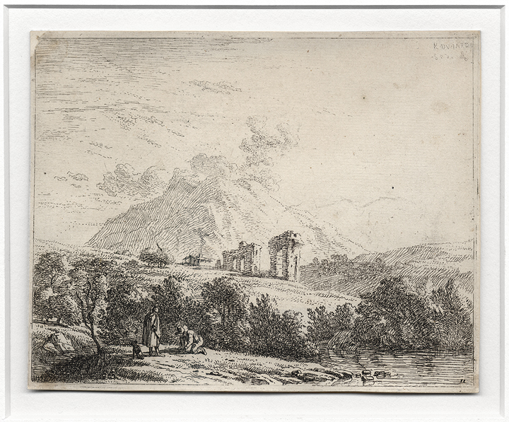| Original etching on laid paper with "Arms of Amsterdam" watermark, mounted on another sheet of laid paper. Signed and dated in the plate in upper right corner, and also with the number "11" in the lower right. In very good condition, apart from the 1/8" missing from the top left corner, framed with conservation materials. Sheet size: 4 7/8" x 6 1/16", Framed: 13 3/8" x 14 1/8" Catalogue reference: Bartsch I (1) 11-I (170) |