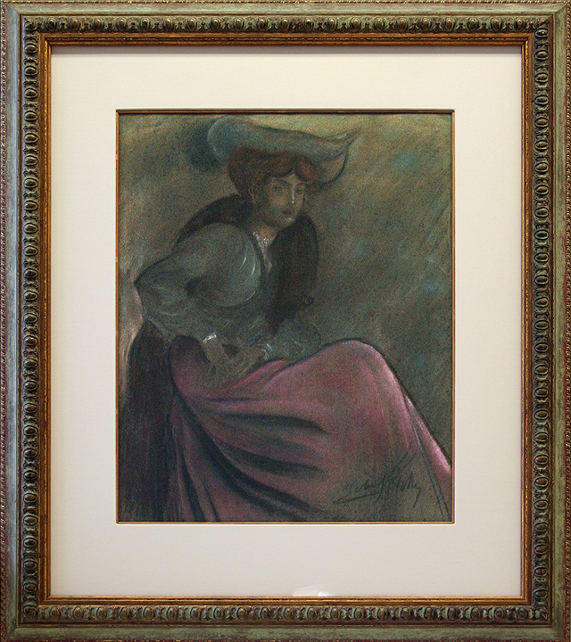 Original pastel drawing on paper. Hand signed in black at lower right: "Lobel-Riche." Image: 20 1/2" x 16" The painter and engraver Almery Lobel-Riche was born in Geneva, Switzerland to parents of French descent. He is widely recognized for his images of elite society during the "Belle Epoque" as well as his numerous book illustrations. |