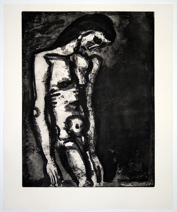 Original aquatint and drypoint on wove paper. Signed and dated by the artist in the plate, "1922 GR," lower right. The third plate from the series "Miserere" consisting of 58 plates by Rouault from 1922 to 1927. Impression from the definitive state. The edition of 500 was printed in Paris by Jacquemin between 1922-27 and published after the war in 1948 by la Société d'Edition L'Etoile filante. In excellent condition.
