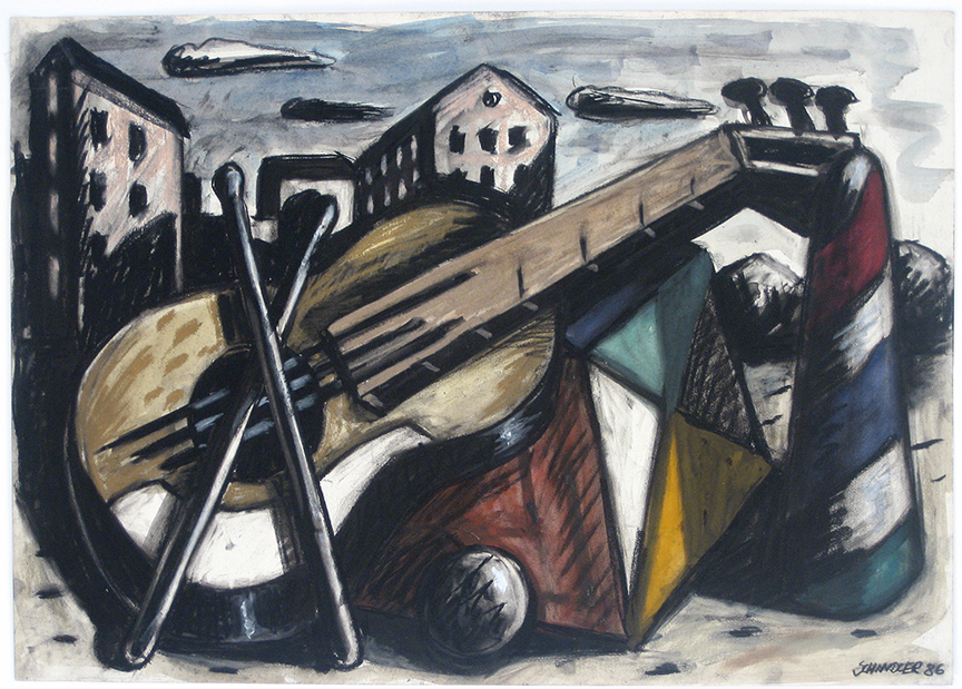 Charcoal and crayon drawing. Hand signed and dated in charcoal, lower right “Schidler 86”. In very good condition. Sheet size: 17” x 24"